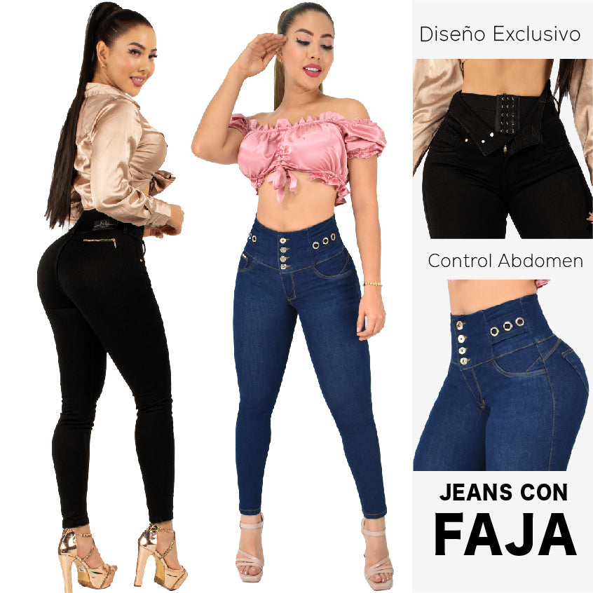 "Nuestros jeans con faja te ofrecen un secreto de belleza bien guardado. Disfruta de una cintura más definida y una apariencia más estilizada sin renunciar a la libertad de movimiento"