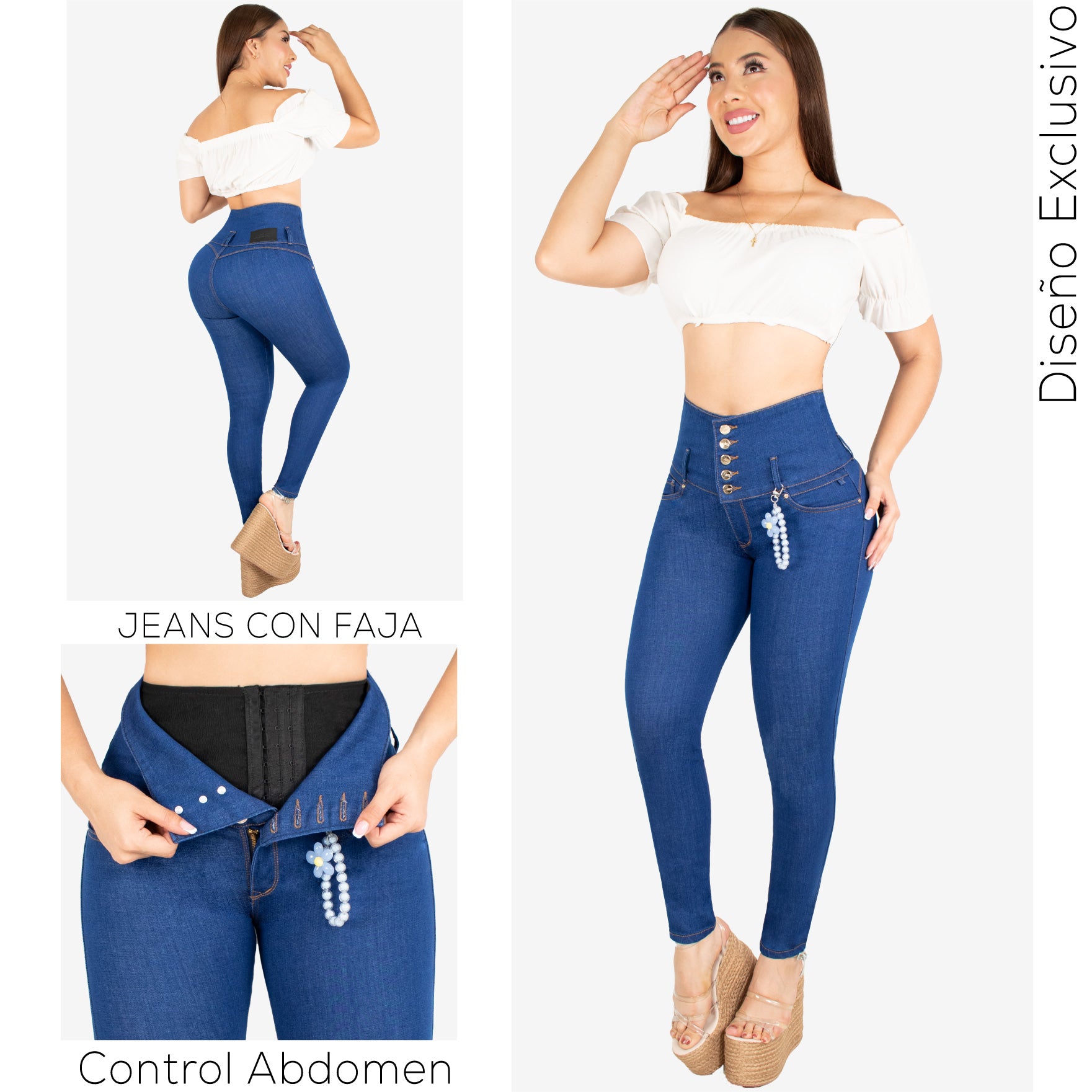 "Nuestros jeans con faja te ofrecen un secreto de belleza bien guardado. Disfruta de una cintura más definida y una apariencia más estilizada sin renunciar a la libertad de movimiento"