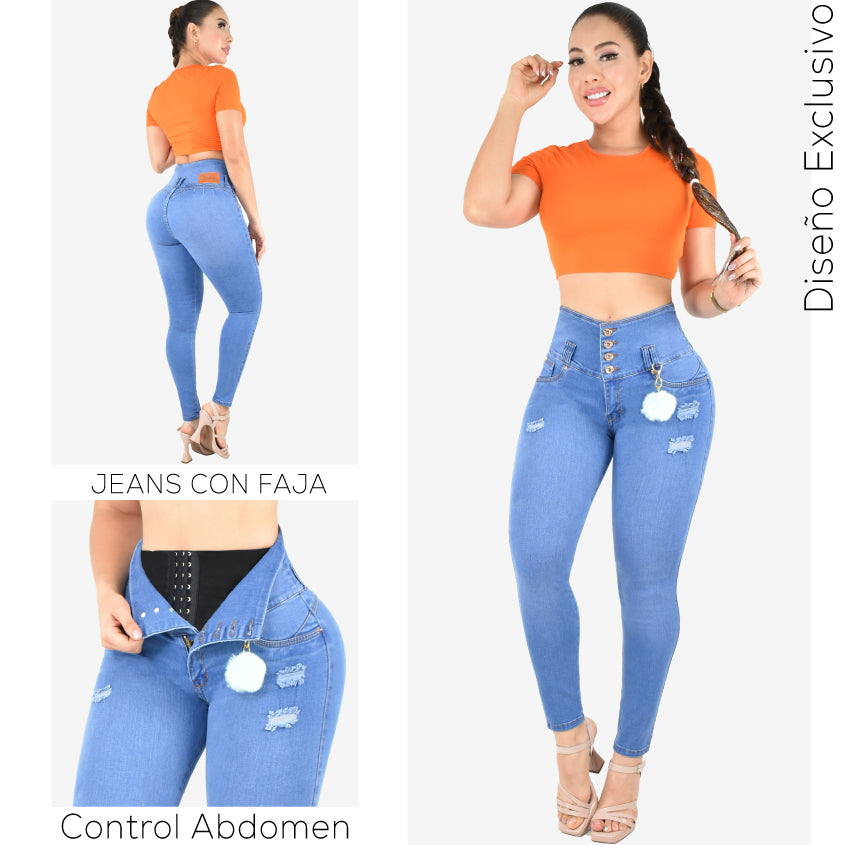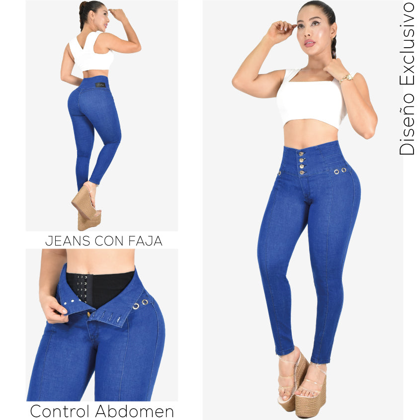 "Nuestros jeans con faja te ofrecen un secreto de belleza bien guardado. Disfruta de una cintura más definida y una apariencia más estilizada sin renunciar a la libertad de movimiento"